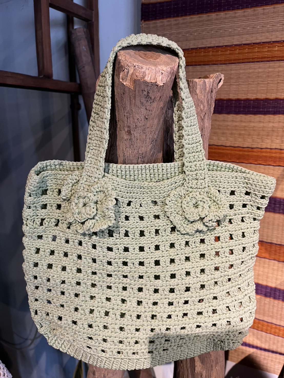 กระเป๋าถักโคเชต์ฝีมือของกลุ่มวิสาหกิจชุมชนโรงเรียนผู้สูงอายุตำบลวังหิน จังหวัดตาก