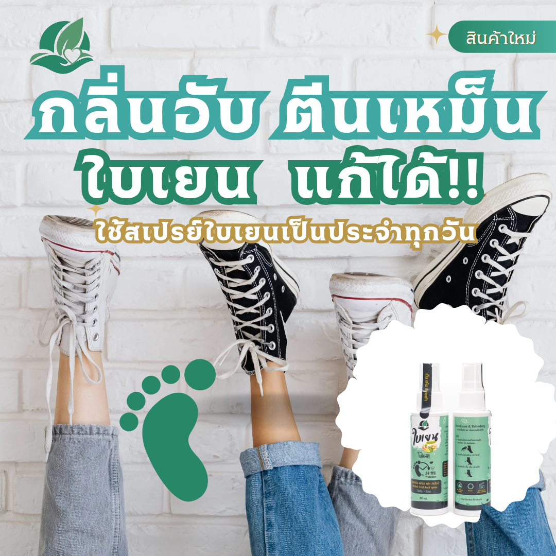 อาทิ ใบโปร่งฟ้า ขมิ้นชัน ไพล และอื่นๆ **เป็นสูตรเฉพาะของใบเยน ** ที่มีคุณสมบัติช่วยลดแบคทีเรีย เชื้อราได้ดี จึงช่วยระงับกลิ่นเท้าไม่พึงประสงค์ได้เป็นอย่างดี นอกจากนั้น ยังลดอาการคัน จากแบคทีเรียและเชื้อราได้ด้วย ให้ความรู้สึกแห้ง เย็น สบายเท้า หลังใช้ในทันที ทำให้สามารถพ่นได้ระหว่างวัน ทั้งบริเวณเท้า ถุงเท้า และรองเท้า เพื่อช่วยดับกลิ่น